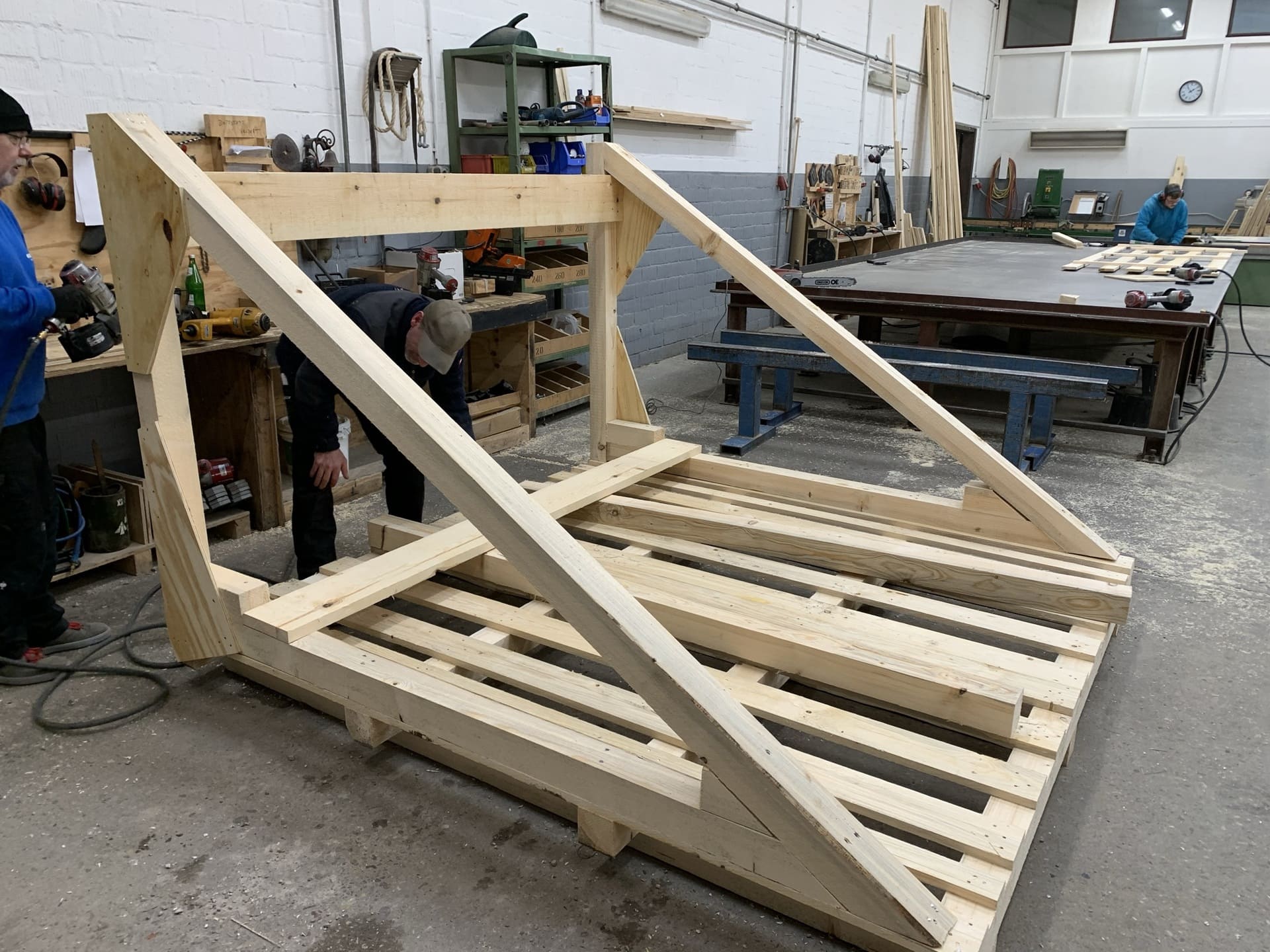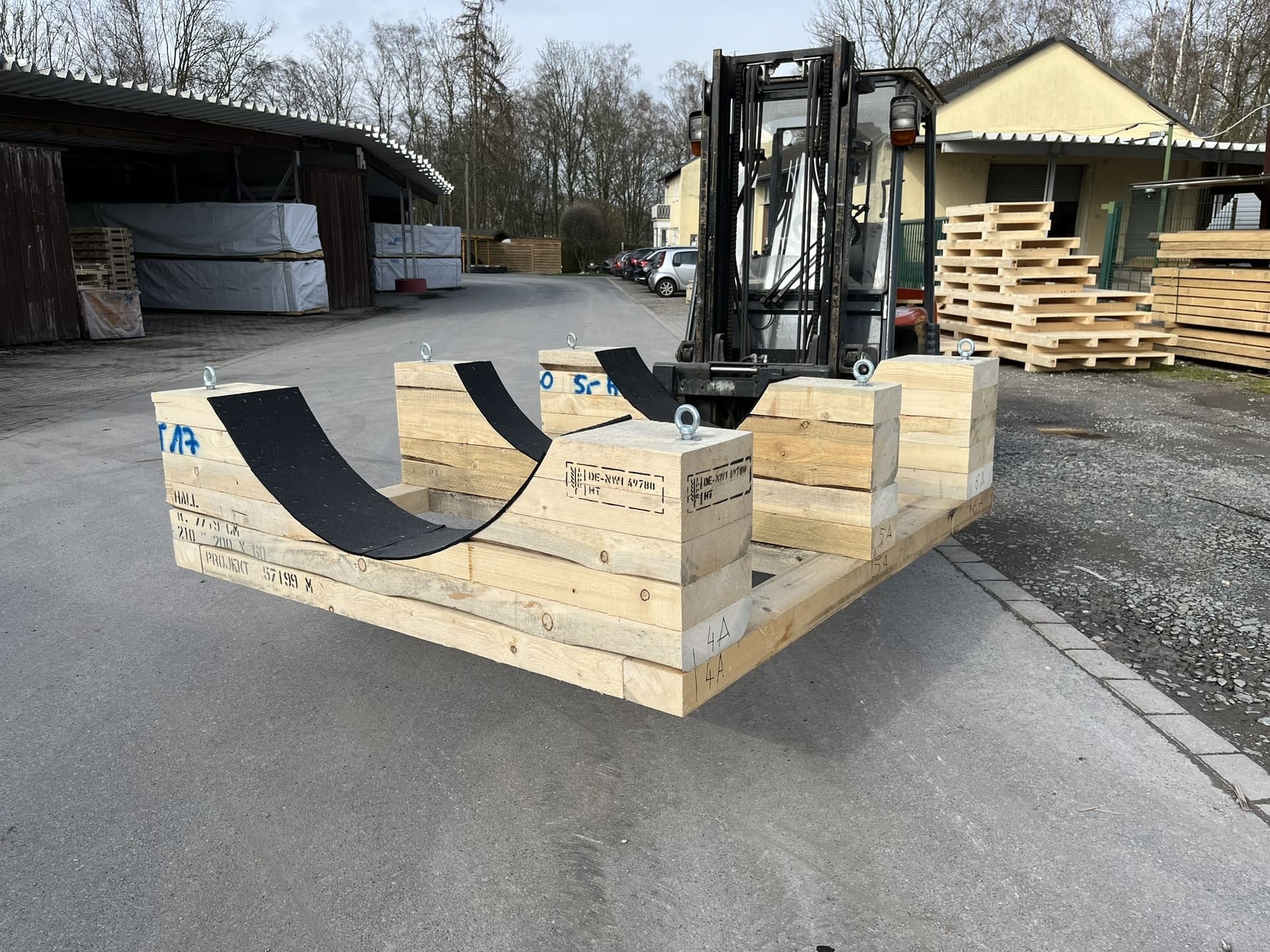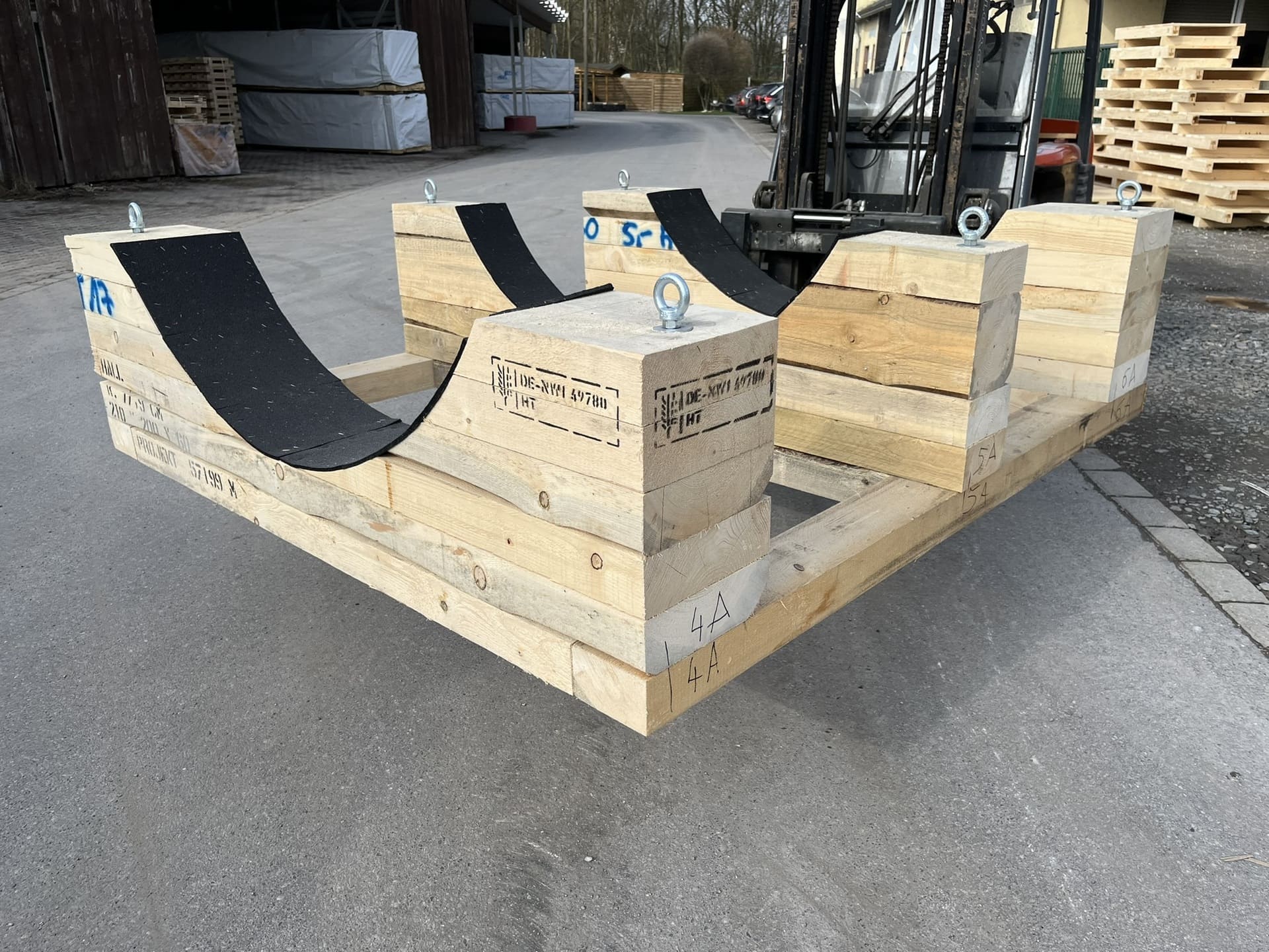 Wir fertigen Transportgestellen aller Arten, angefangen vom kleinen Radsatzgestell in 100-facher Ausführung für einfache Radsätze bis hin zum mehrteiligen Auflagerbock aus Hartholz für „richtig schwere“ Rotoren.